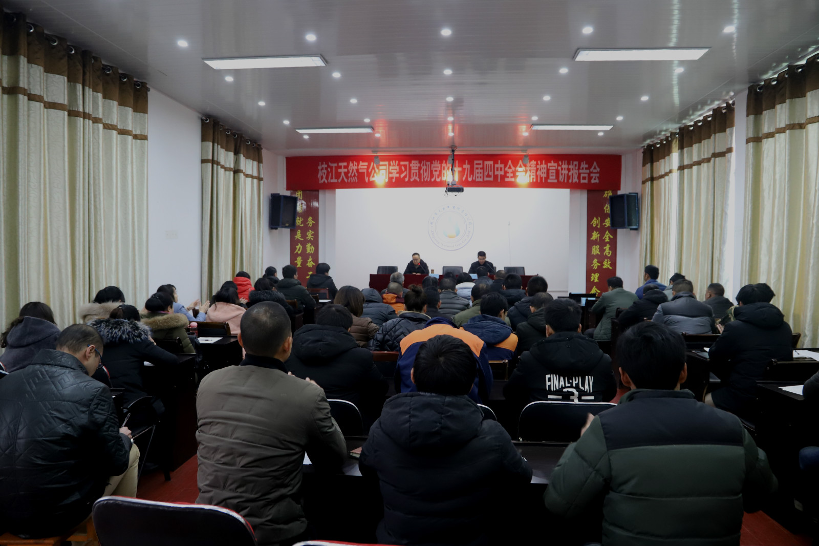 1月3日下午,枝江天然氣公司組織召開(kāi)黨的十九屆四中全會(huì)精神宣講報(bào)告會(huì)。會(huì)議邀請(qǐng)了企業(yè)服務(wù)秘書(shū)、市政協(xié)辦公室副主任李杰同志進(jìn)行宣講。