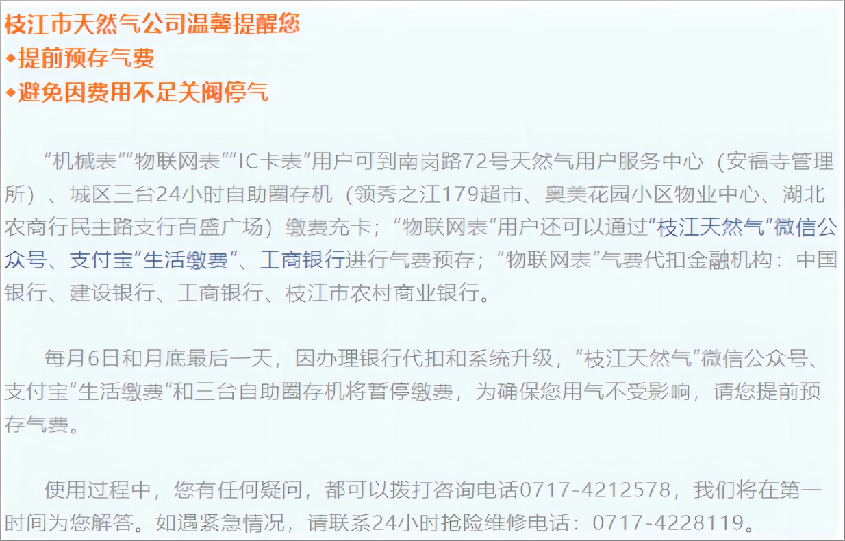 溫馨提示!別忘提前預(yù)存燃?xì)赓M(fèi)!