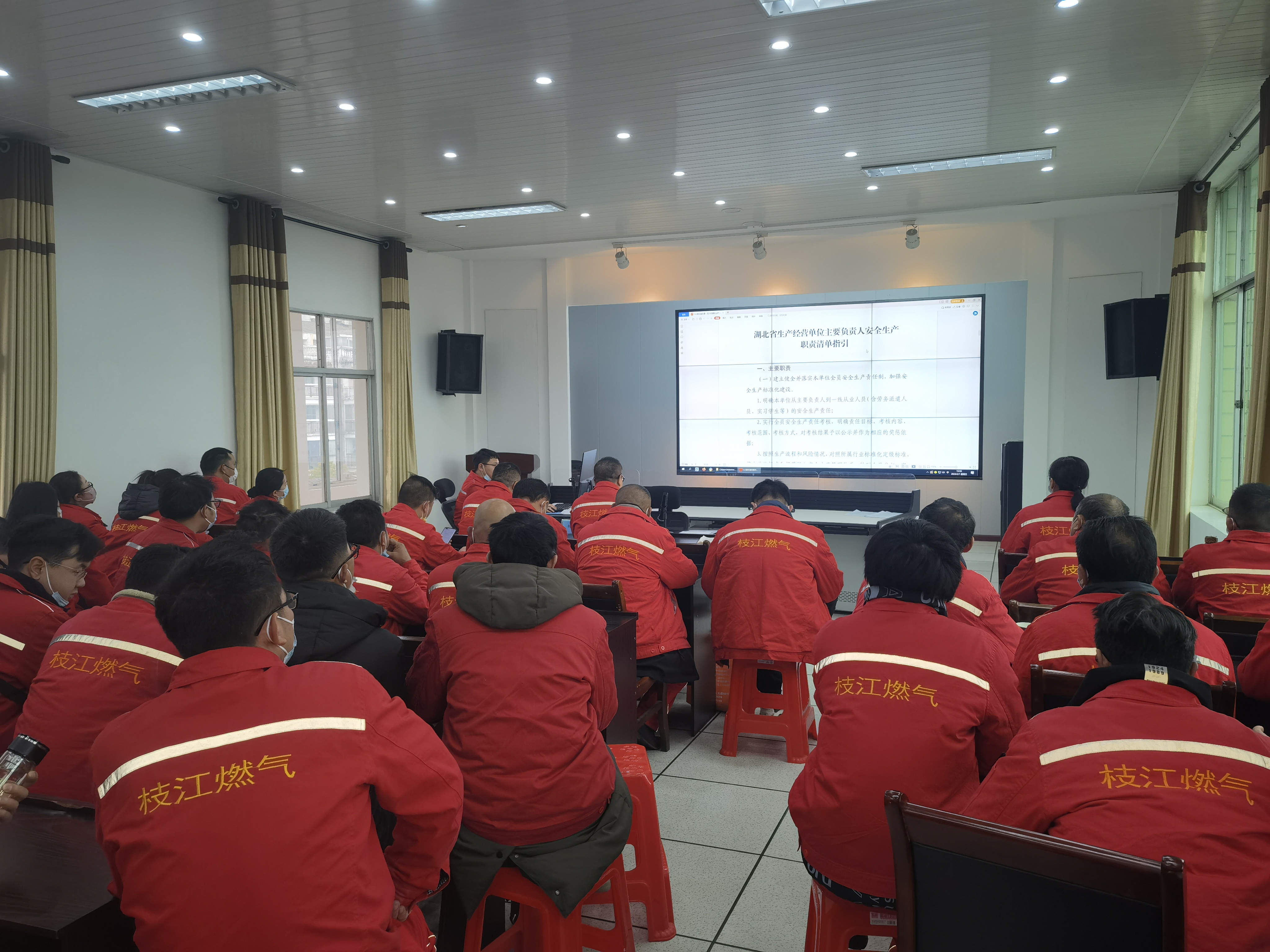 為進(jìn)一步壓實(shí)安全生產(chǎn)主體責(zé)任,增強(qiáng)全體從業(yè)人員安全生產(chǎn)意識(shí),提升安全生產(chǎn)能力,切實(shí)防范生產(chǎn)安全事故,2月1日下午,枝江市天然氣公司組織全體員工開展了復(fù)工復(fù)產(chǎn)安全生產(chǎn)教育培訓(xùn)會(huì)議,進(jìn)一步統(tǒng)一思想、明確目標(biāo),確保全市燃?xì)馍a(chǎn)安全,凝心聚力助推全市經(jīng)濟(jì)高質(zhì)量發(fā)展。
