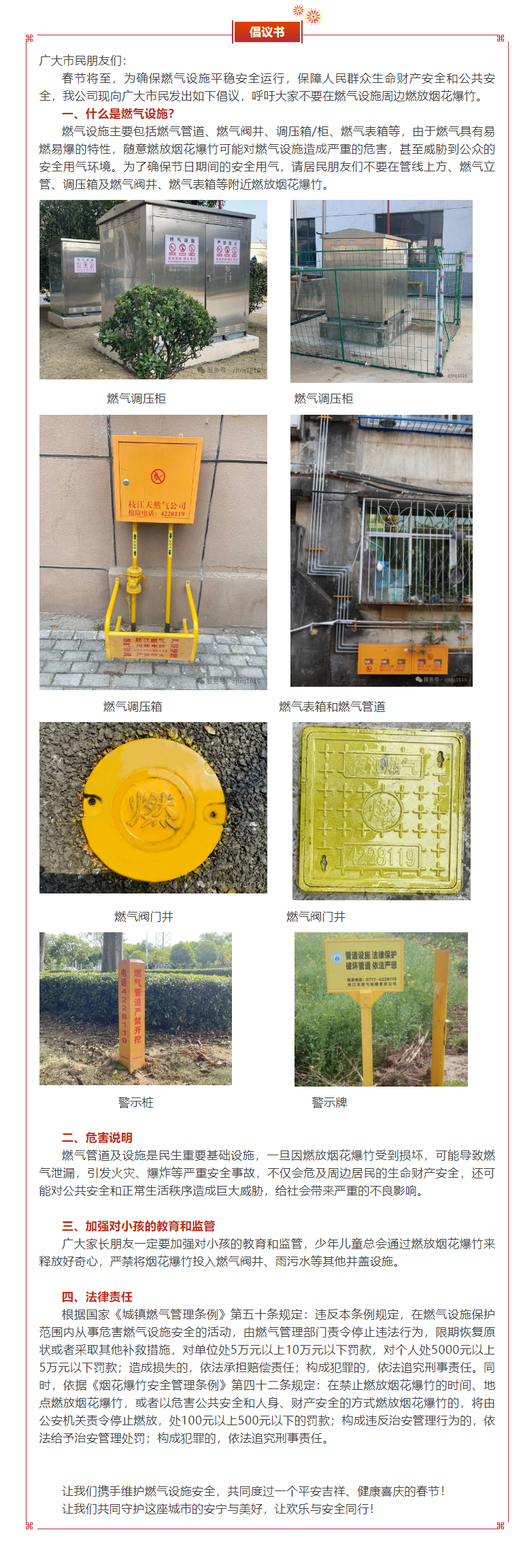 關(guān)于禁止在燃?xì)夤艿涝O(shè)施附近燃放煙花爆竹的倡議書