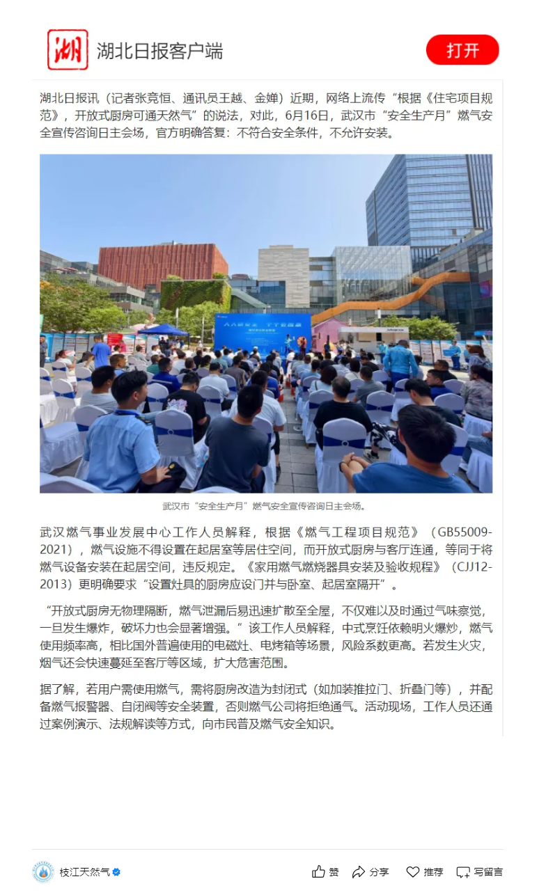 開放式廚房可以通天然氣了?官方回答:不行