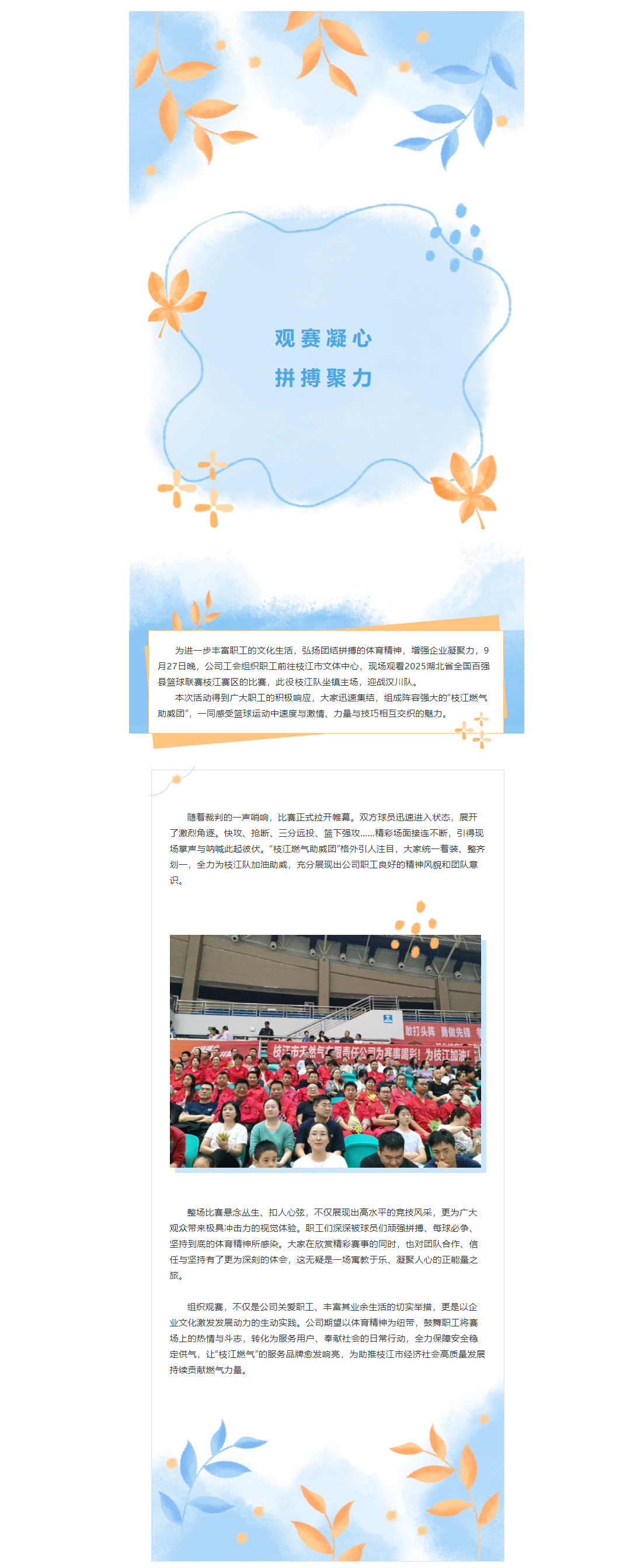 觀賽凝心 拼搏聚力——公司組織員工赴枝江市文體中心觀看籃球賽事