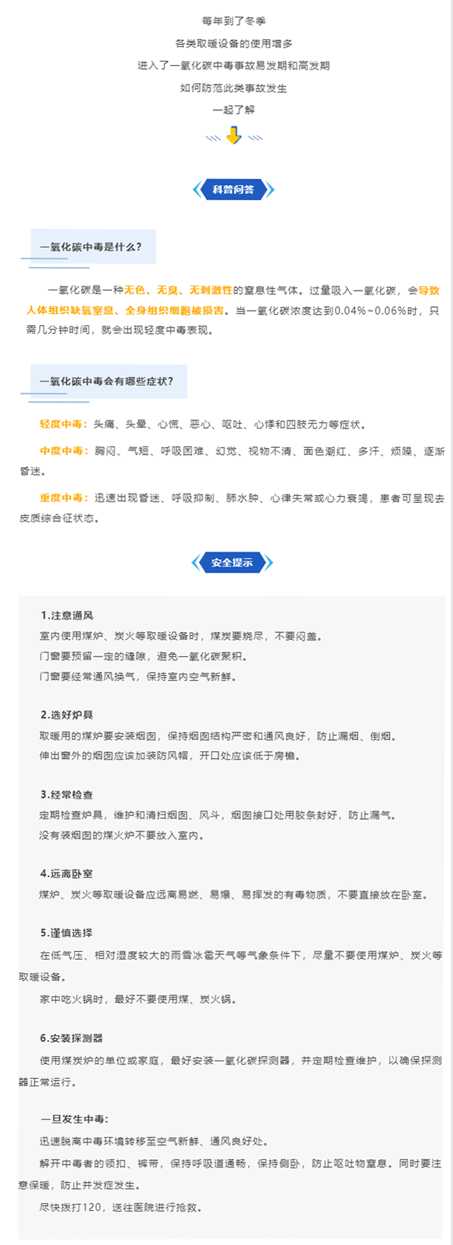 冬季取暖,警惕一氧化碳中毒!